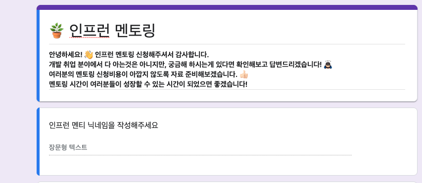 • GOOGLEFORM 을 통해 멘티님의 얘기를 먼저 작성해주시면 됩니다.