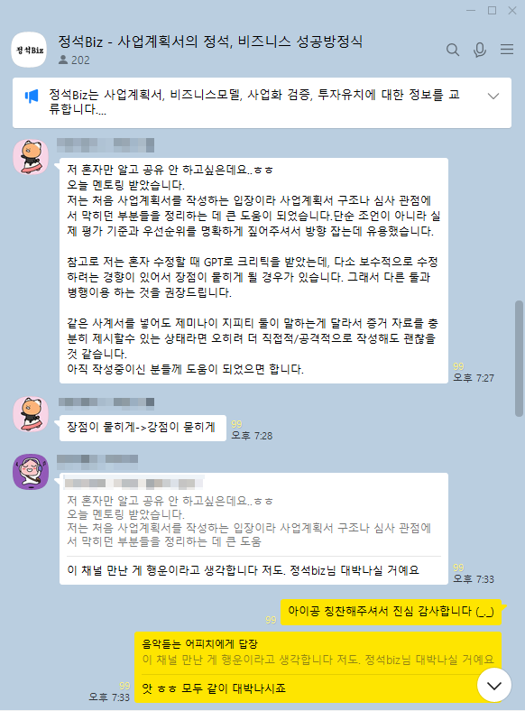 예비창업패키지 지원을 준비 중인데, 처음 사업계획서를 작성하다 보니 구조를 잡는 것부터 어려움이 많았습니다. 유튜브에서 보던 이동건 멘토님이 직접 제 사업계획서를 꼼꼼하게 체크해주시면서, 부족한 점과 잘된 점을 명확히 구분해 주셨고 보완 방향까지 구체적으로 제시해주셨습니다. 특히 심사 관점에서 논리 흐름, 근거의 설득력, 우선순위가 어디에서 흔들리는지까지 짚어주셔서 이후에 무엇을 어떻게 수정해야 할지 기준이 명확해졌습니다. 사업계획서에 대한 피드백을 넘어, 실제 사업을 진행하며 겪고 있던 창업자 관점의 고민까지 경험을 바탕으로 함께 정리해주셔서 큰 도움이 되었습니다. 멘토링 시간을 초과해서까지 봐주시고 추가 피드백 기회도 주셔서, 단순한 조언이 아니라 결과물과 방향성 모두를 정리할 수 있는 멘토링이었습니다.