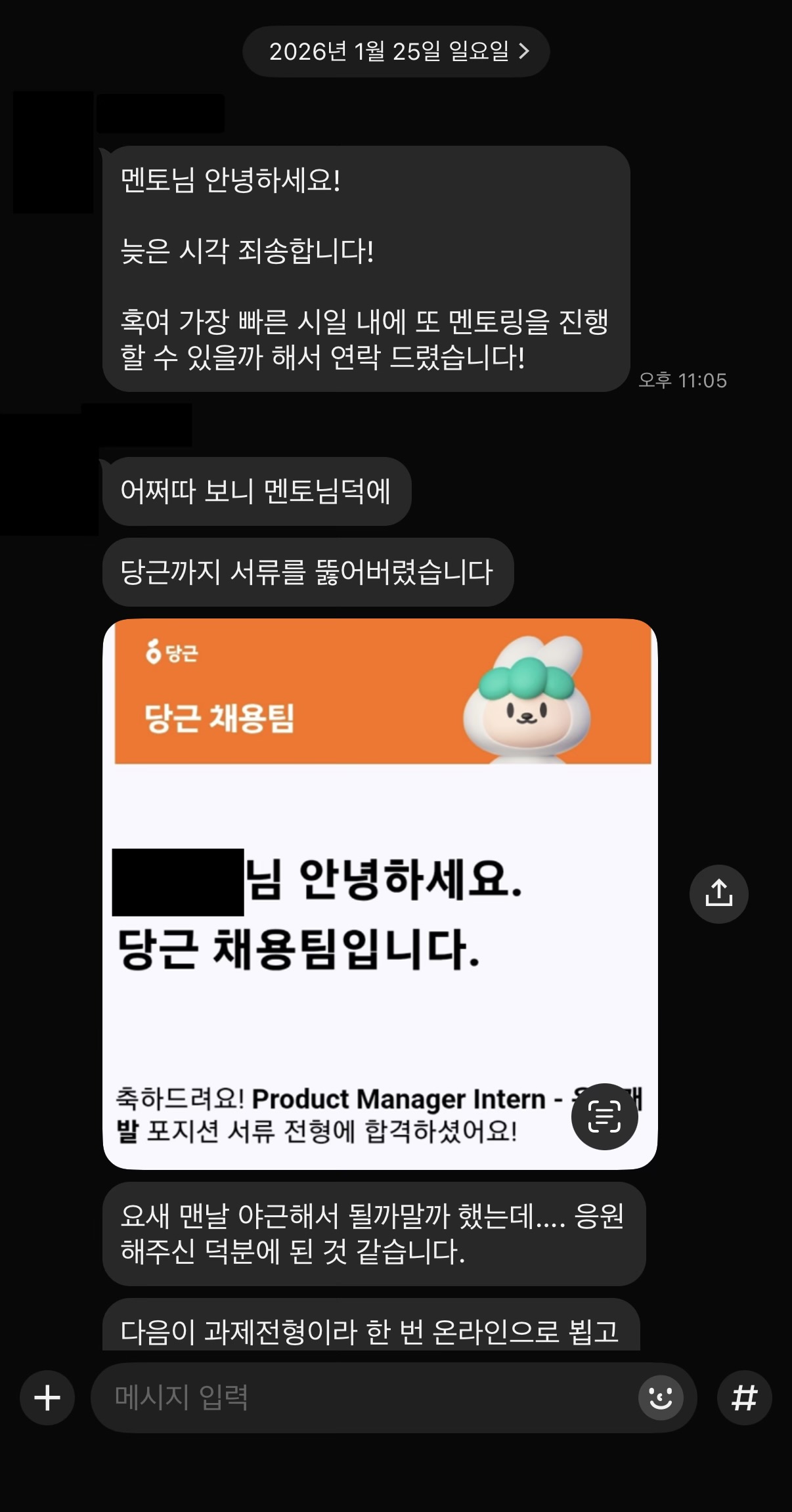 잠시 사담을 하면, 취업 전 직무 선정으로 방황했을 때가 있었어요. 그 때 5만원을 주고 커리어 코칭을 받았어요. 그 분이 PM이 저와 어울린다고 말씀해주셨고 그게 제 인생을 바꾸었어요.