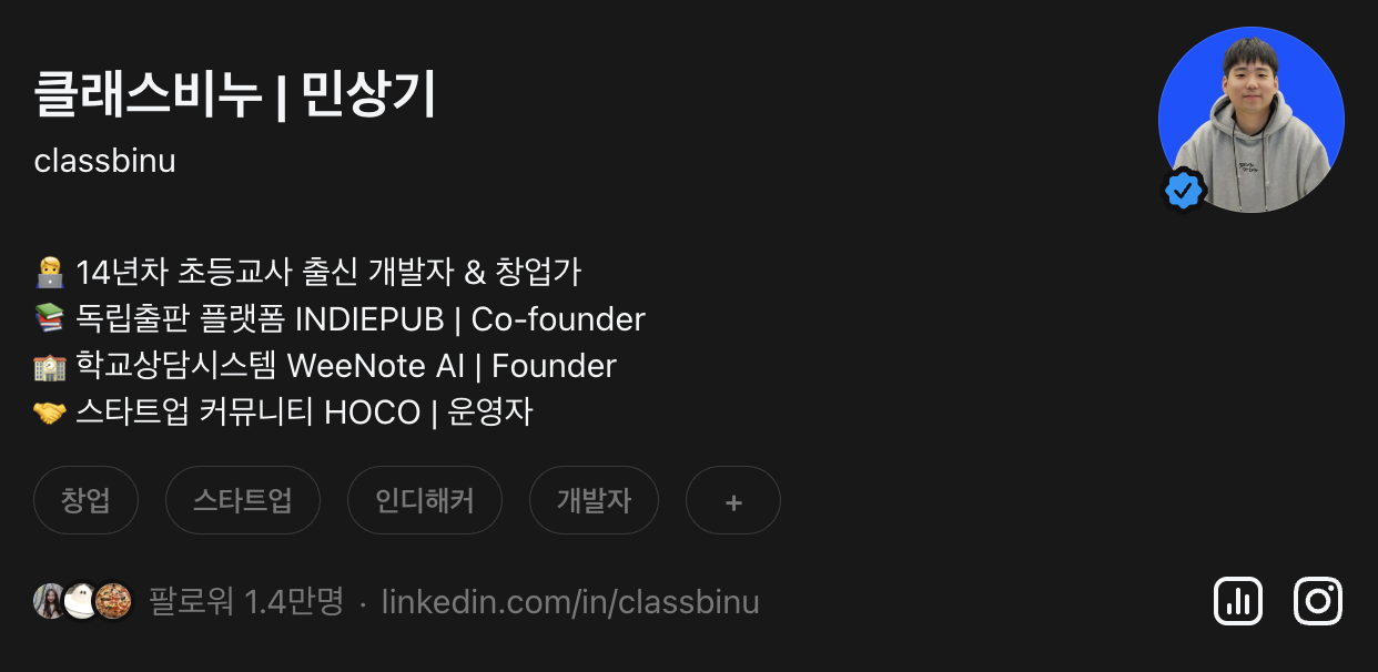 💬 스레드 1.4만 팔로워 크리에이터로 활동하며 콘텐츠 비즈니스도 운영 중입니다.