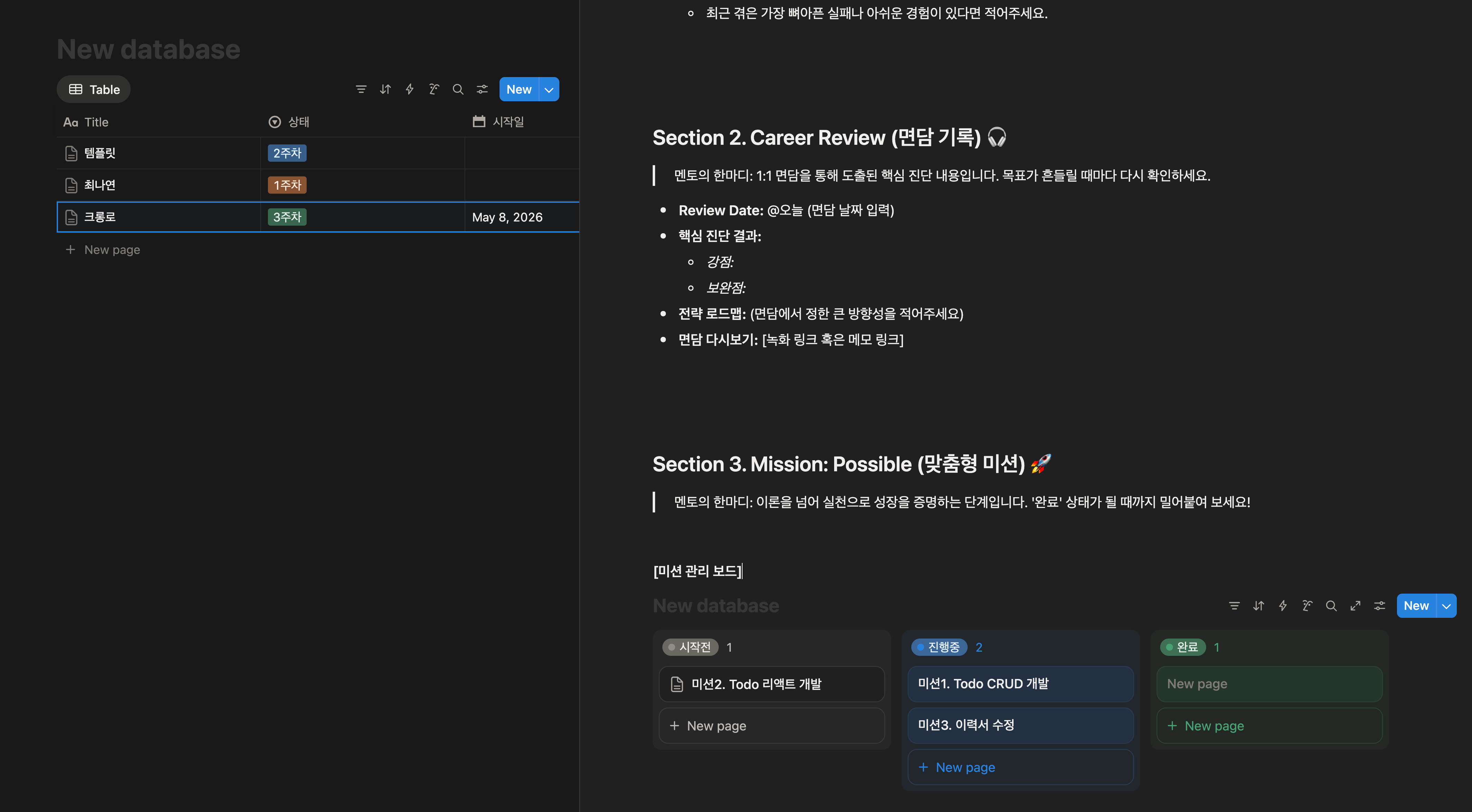 - 미션을 자기주도적으로 설계하시는 것을 가장 추천합니다. 제가 돕습니다.